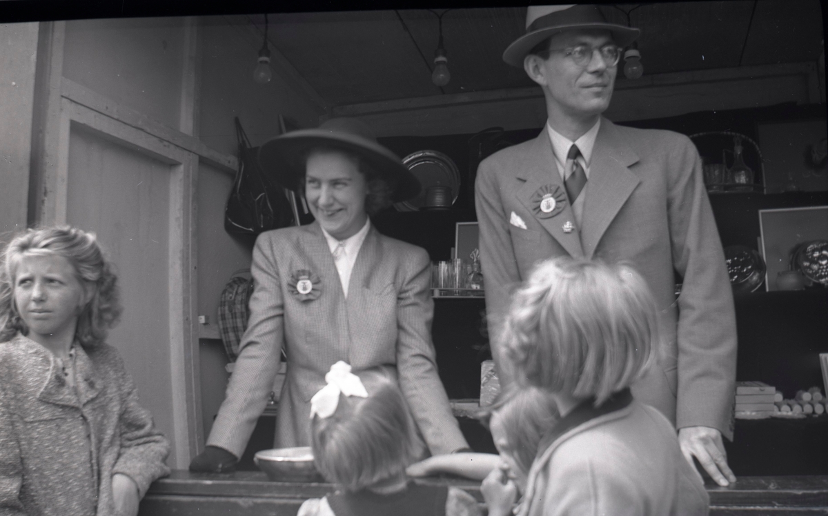 Titel: Sjösättning av fartyg på Kalmar varv med festligheter, 1940-talet.