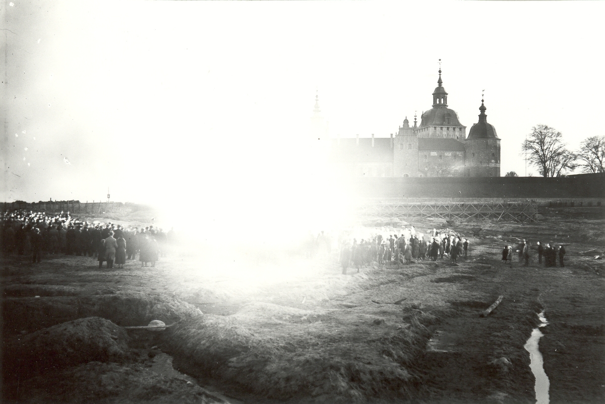 Majbål på valborgsmässoafton i den torrlagda Slottsfjärden.