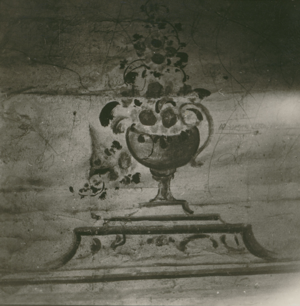 Handmålat tapetmönster i Vena hembygdsstuga.