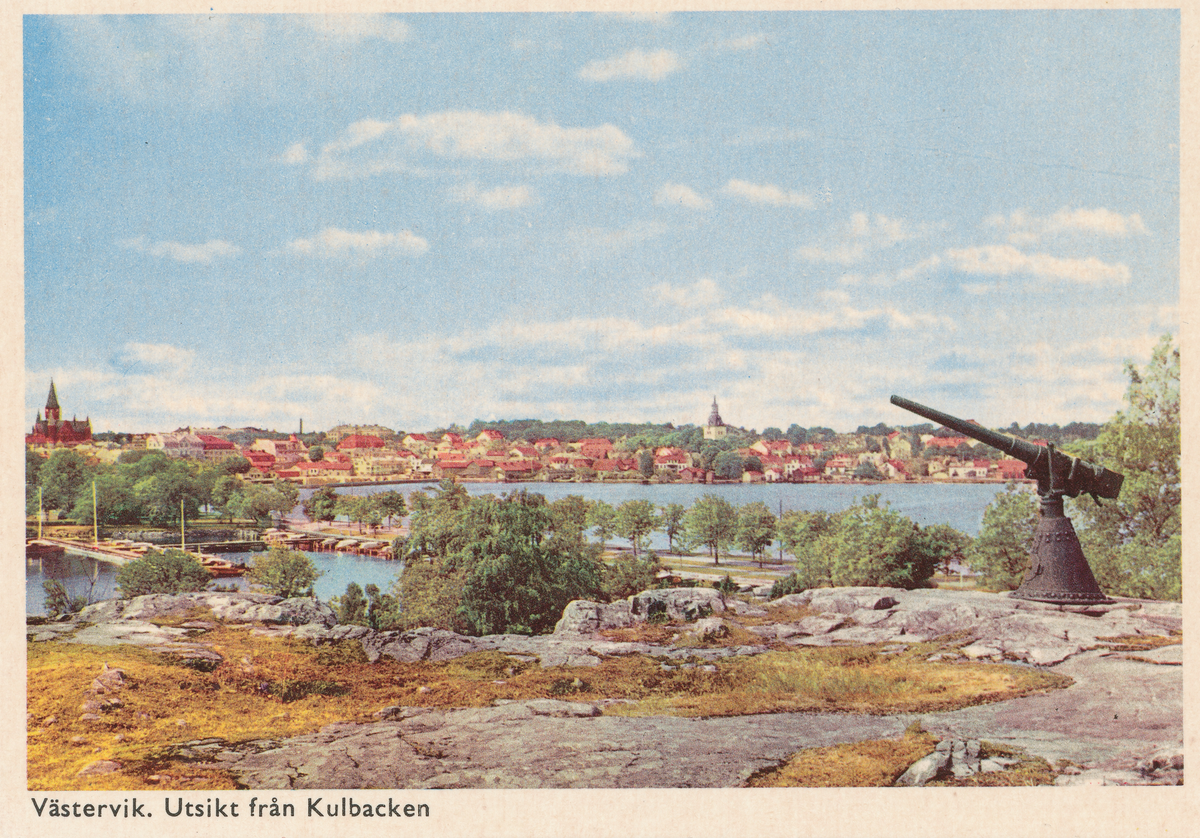 Utsikt från Kulbacken i Västervik, vykort.