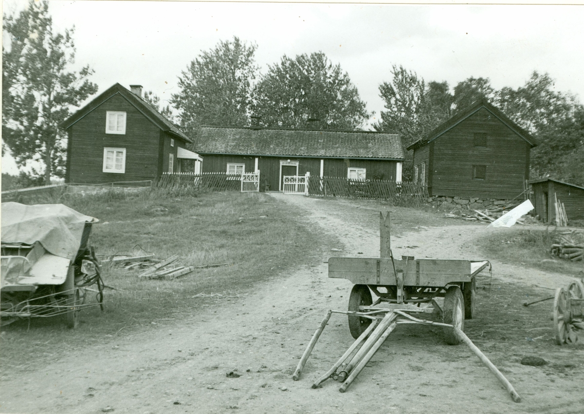 Mangårdens byggnader med manbyggnaden i mitten och flygel två till vänster och flygel tre till höger.
