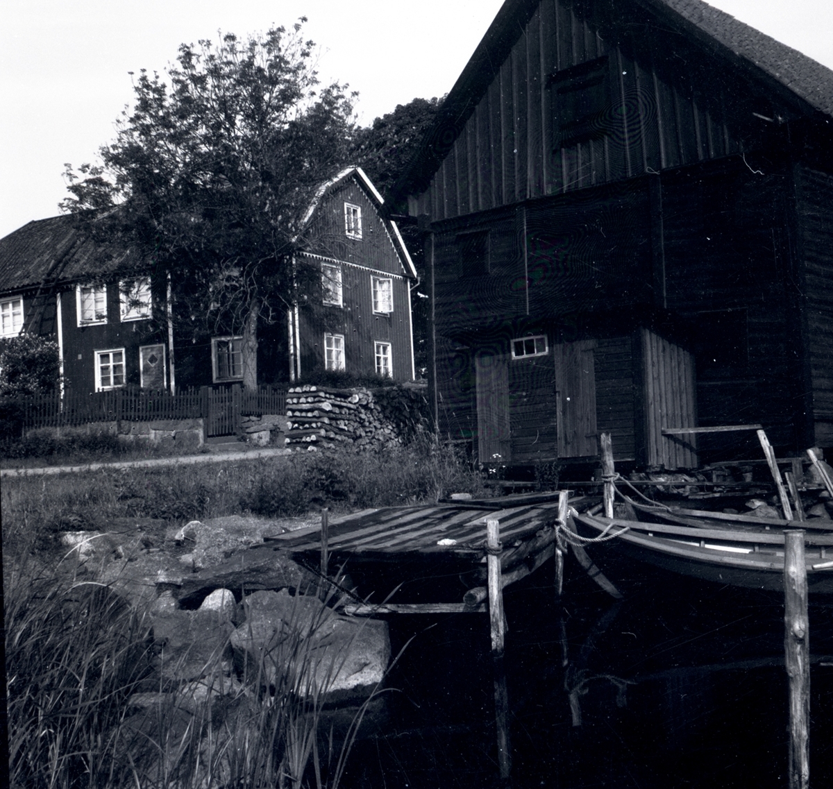 Kastmanska gården i Figeholm. I bilden syns ett bostadshus, en ekonomibyggnad, en brygga och två ekor.