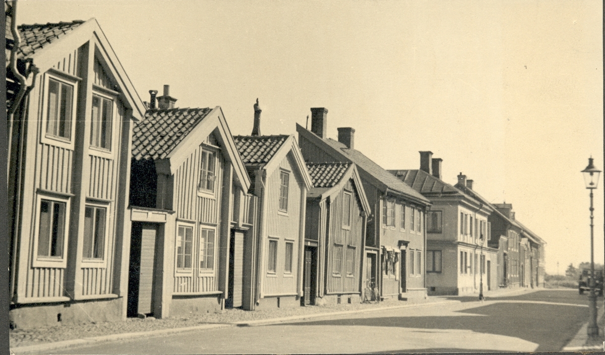 Från Storgatan 59. Kv Mälaren. Bostadshus med sadeltak och träfasad.