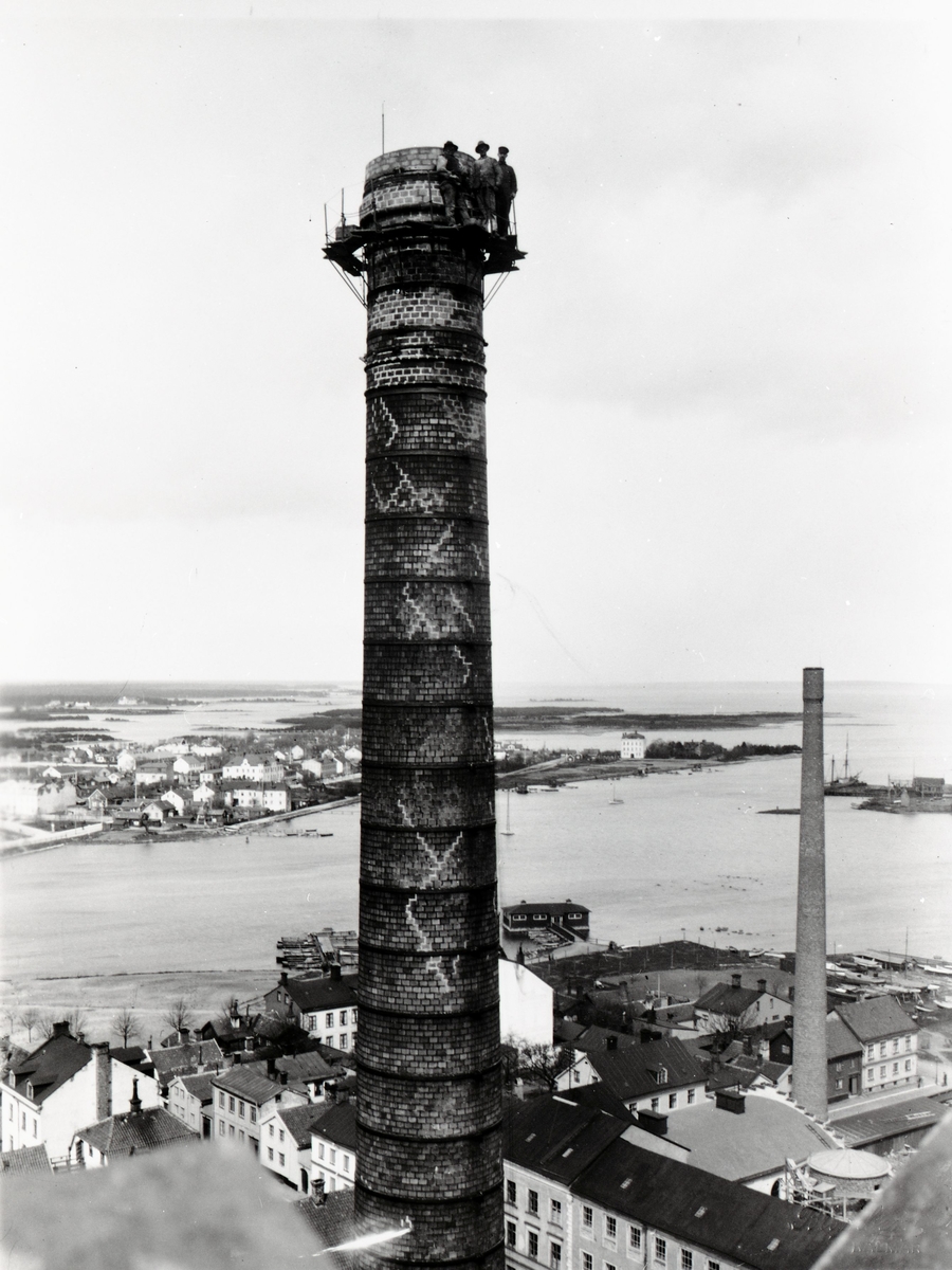 Murarbeten på Ångkvarnens skorsten.