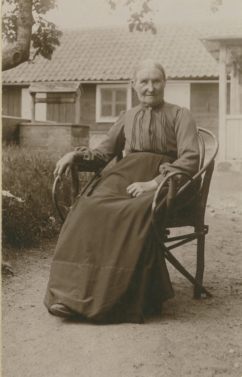 Äldre kvinna utanför sitt hem i Mellanmon.