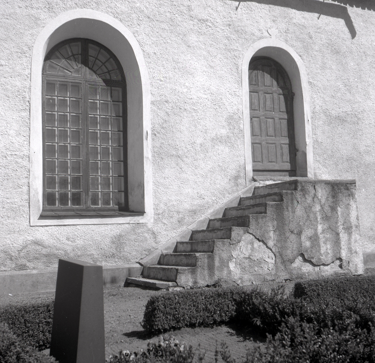 En trappa och några gravvårdar vid Döderhults kyrka.