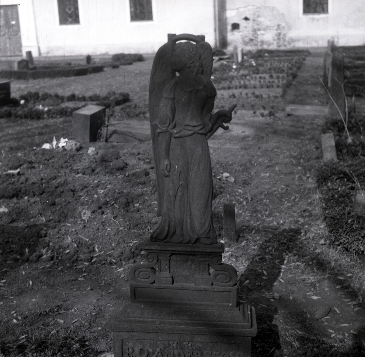 En ängel på en gravsten på Mortorps kyrkas kyrkogård.