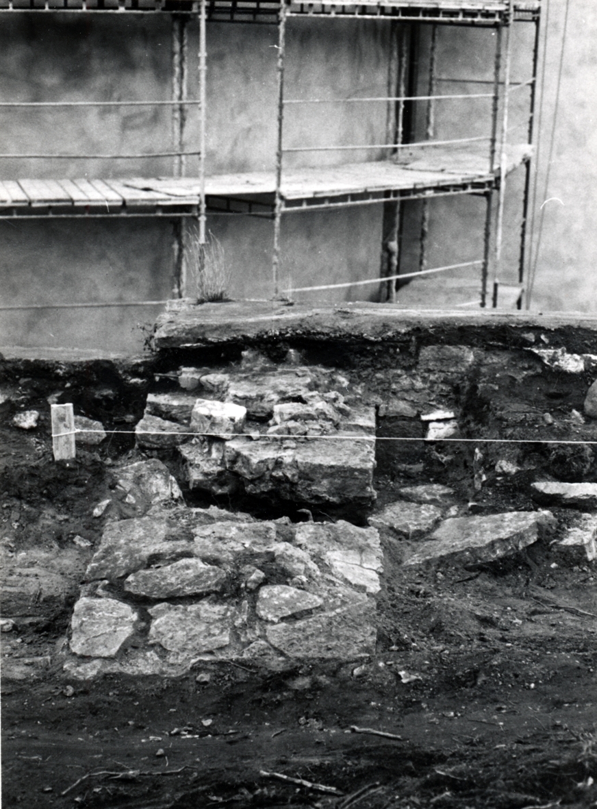 Utgrävning på Kalmar slott.Norra muren sedd mot öster. Rapporten: Krutkammaren, vallgraven, västra vallen och brunnar.