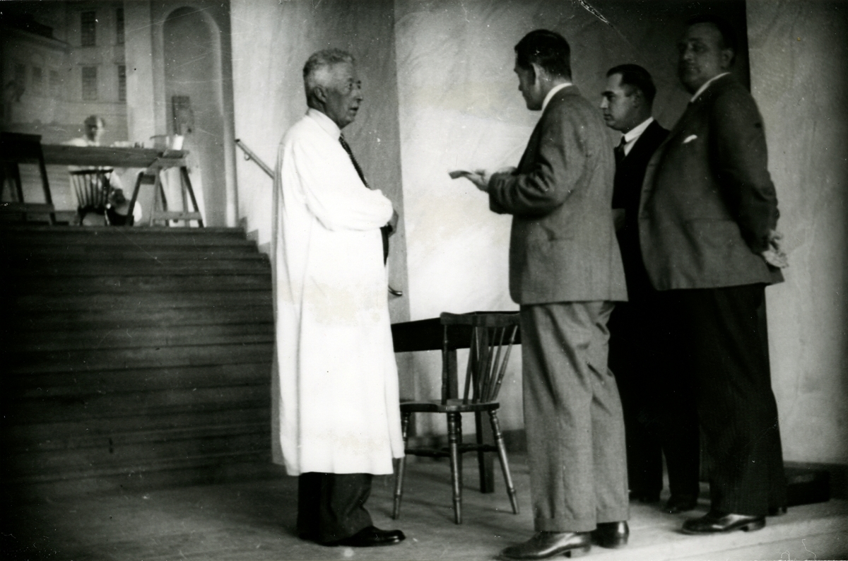Prins Eugen med medhjälpare i Stagneliusskolans trapphus.