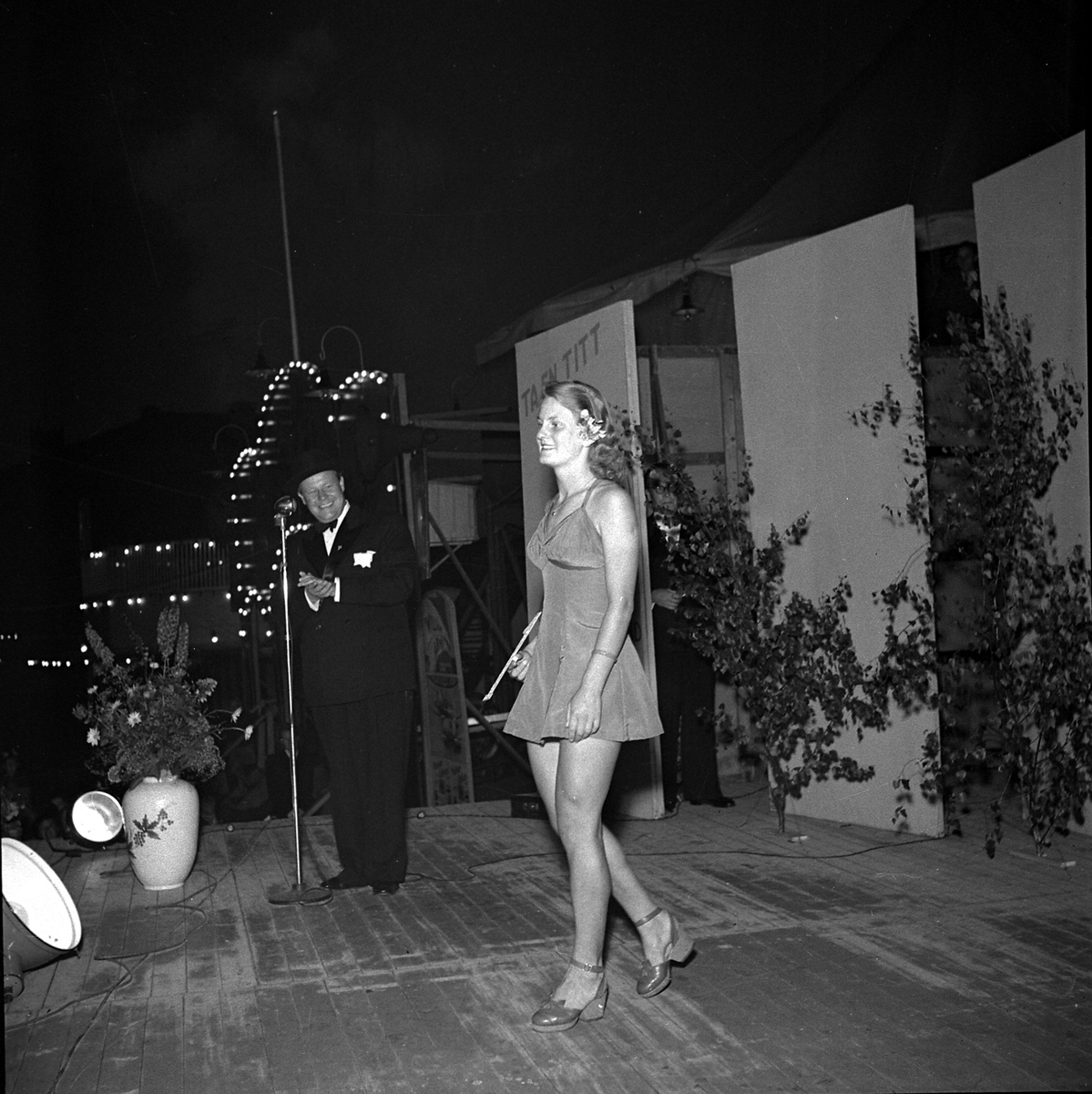 Hantverksutställningen 1947 i Kalmar. Skönhetstävling på stora scenen.
