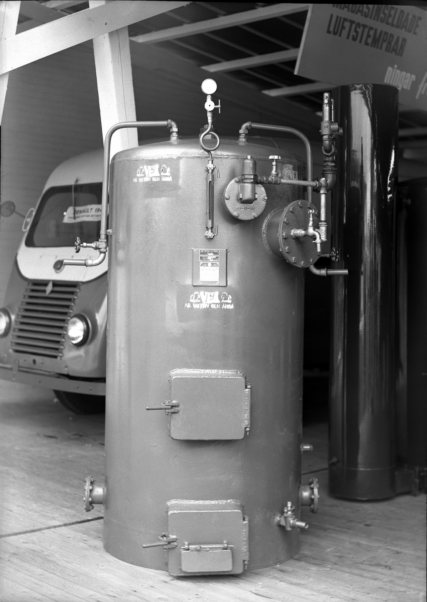 Hantverksutställningen 1947 i Kalmar. Expansionskärl till värmepanna visas på utställningen.