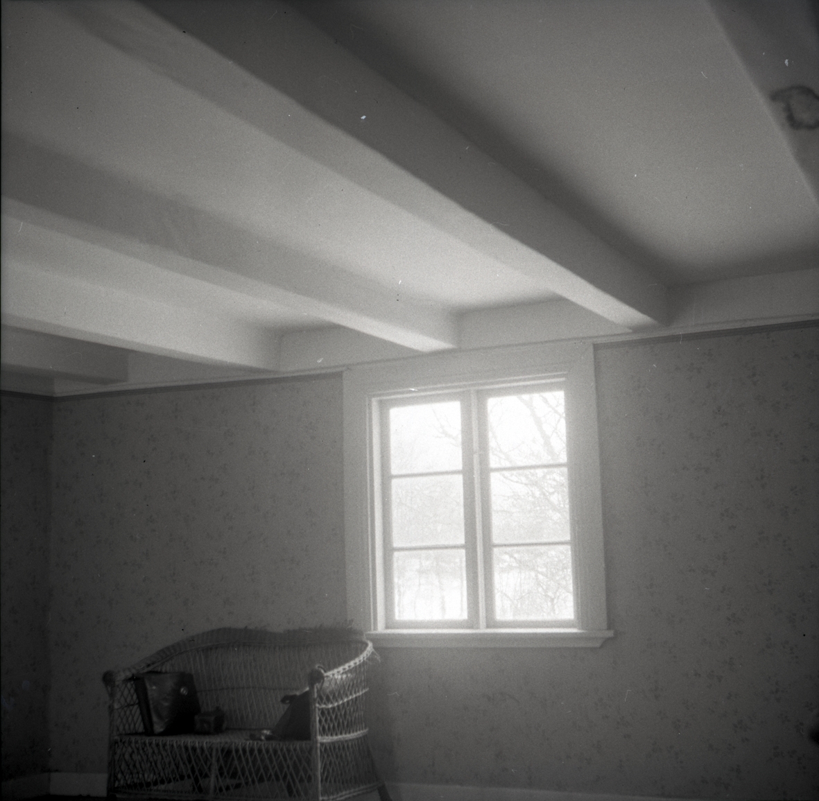 Interiör med rottingsoffa i parstuga på Runtorp 2.