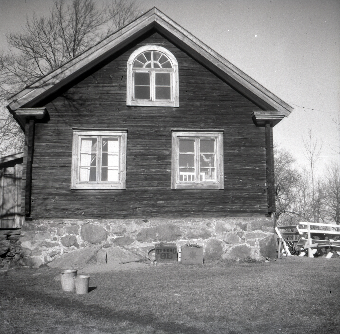 Hagnebo i Madesjö, mangårdsbyggnaden, del av gaveln i förgrunden flygeln och boden.