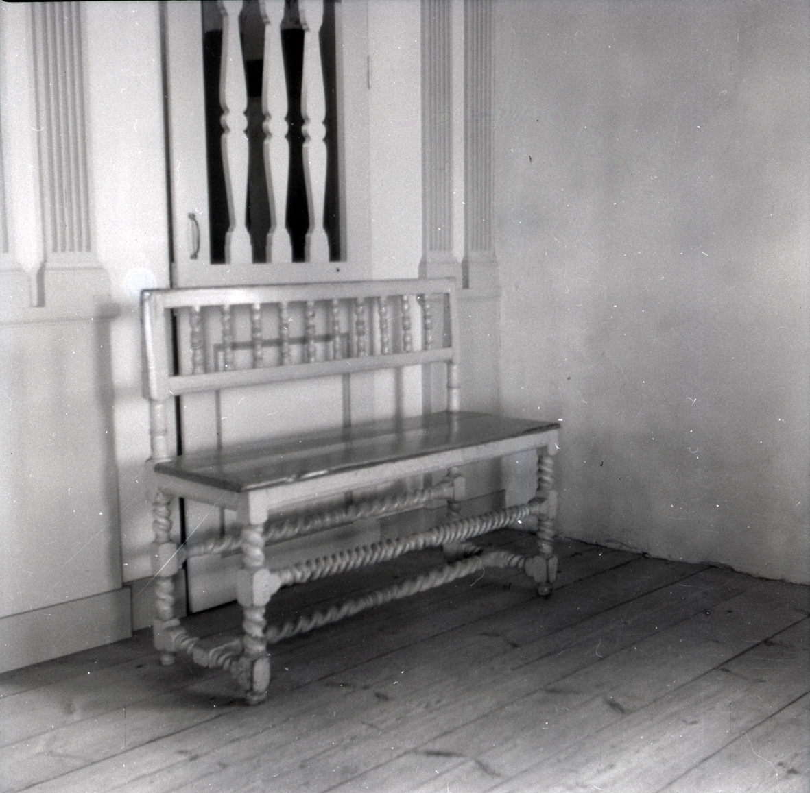 Interiör av Döderhults kyrka, soffa med svarvade detaljer.