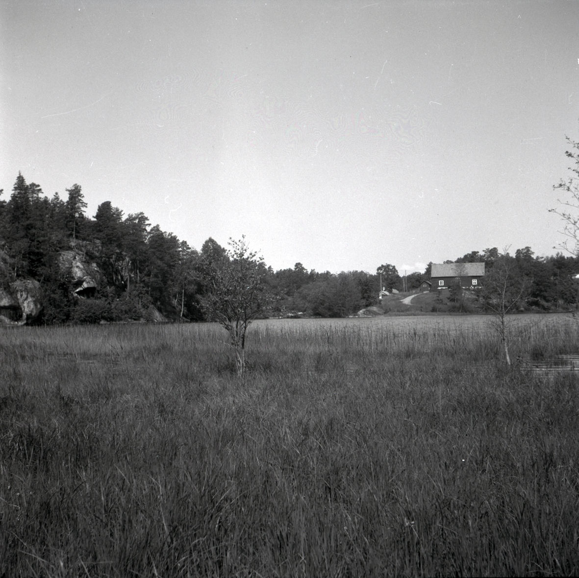 Vattendrag med klippbrant och bostadshus vid Gölpa i Västrums socken.