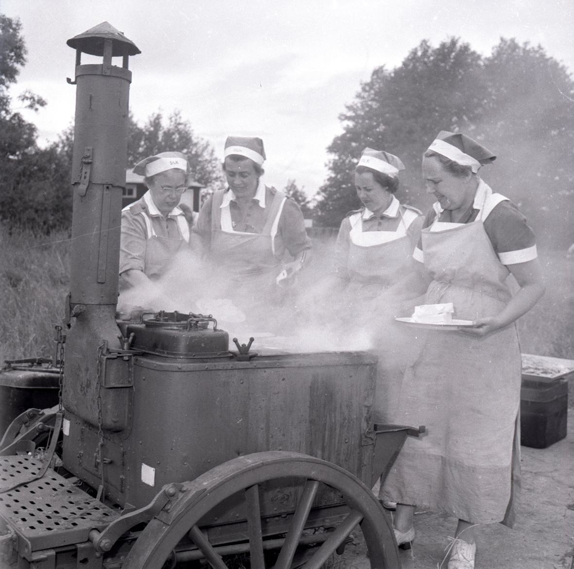 Militär övning i Köpingsvik. Lottor vid fältköket.