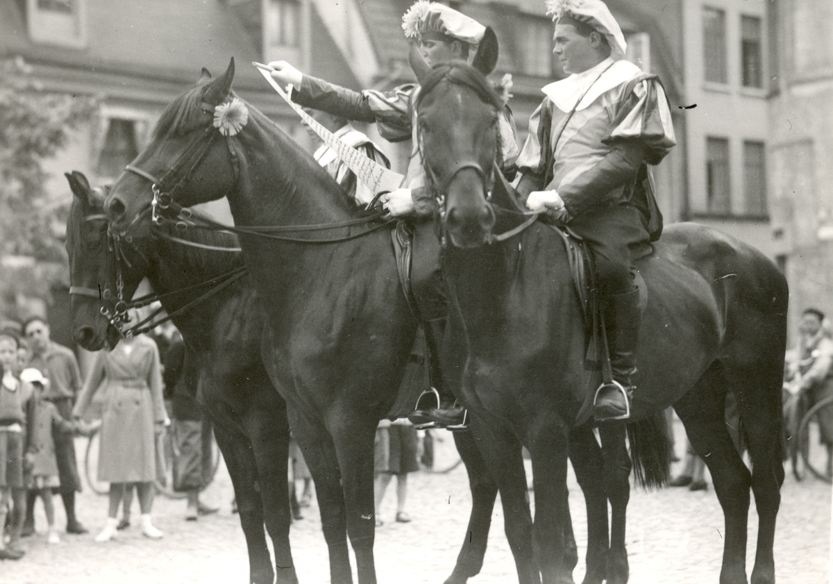 Ryttaren fr.v. Skräddare Jonas Öberg, i mitten poliskonstapel Östen Olsson, son till pastor Walerius Olsson. Kalmar omkr 1932-35.