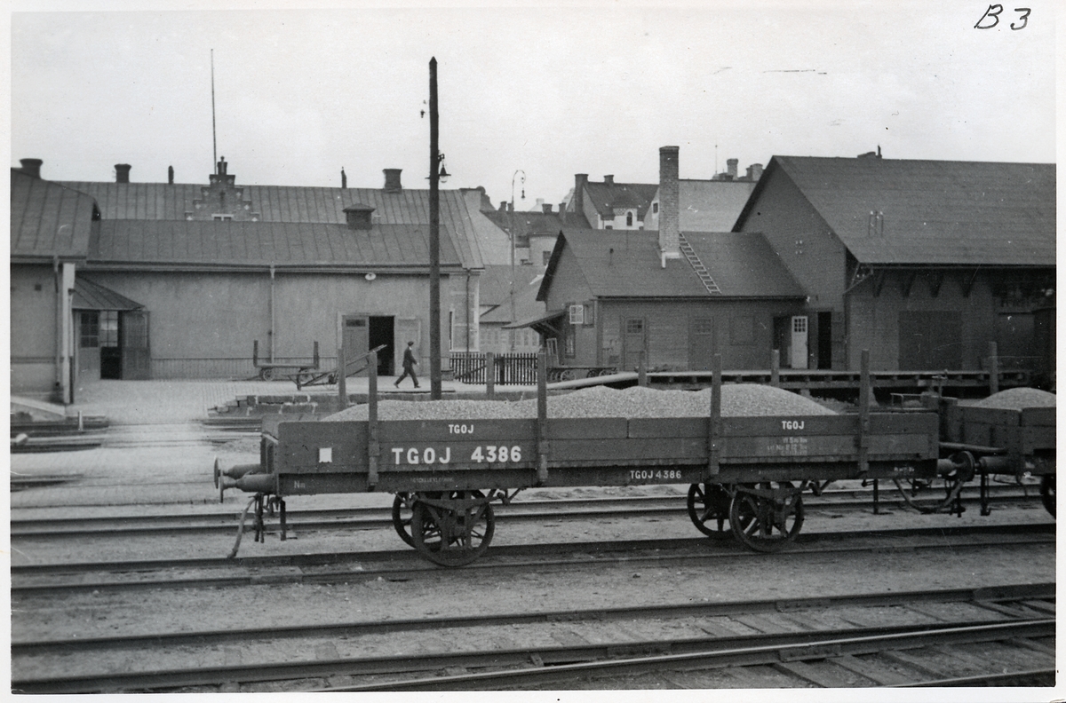 Lastplats vid Örebro Central. Trafikaktiebolaget Grängesberg Oxelösunds Järnväg, TGOJ Nm 4386.