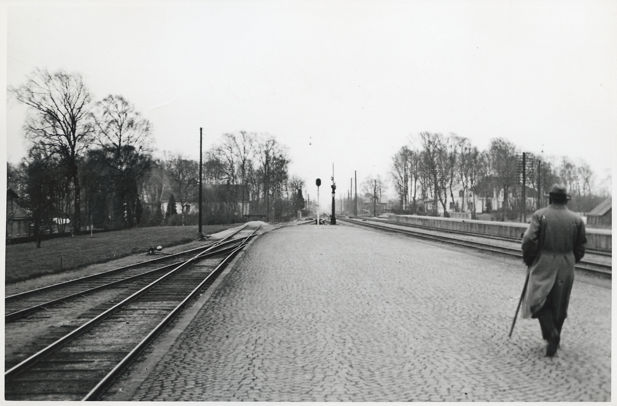 Titel: Järnvägstjänsteman på inspektion vid Hässleholm station.