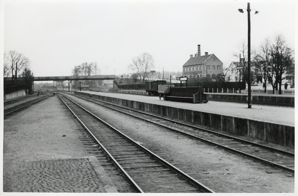 Titel: Plattform och spår vid Hässleholm station.
