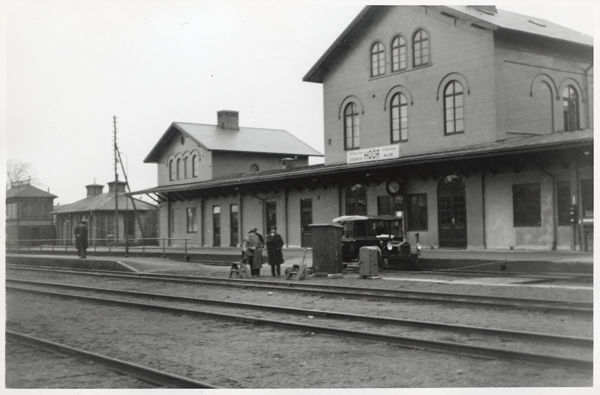 Titel: Järnvägstjänstemän på inspektion vid Höör järnvägsstation.