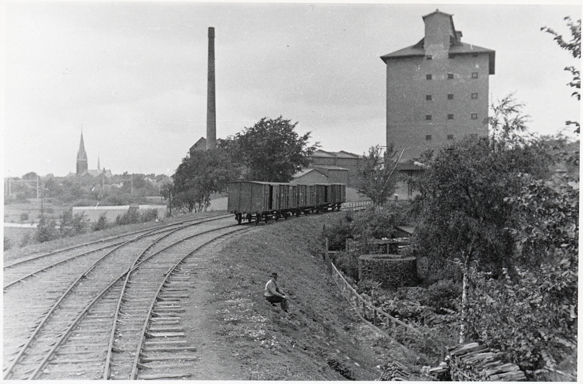 Det höga huset på bilden är ett lagerhus, vilket fungerade som spannmålsmagasin under krigstid.