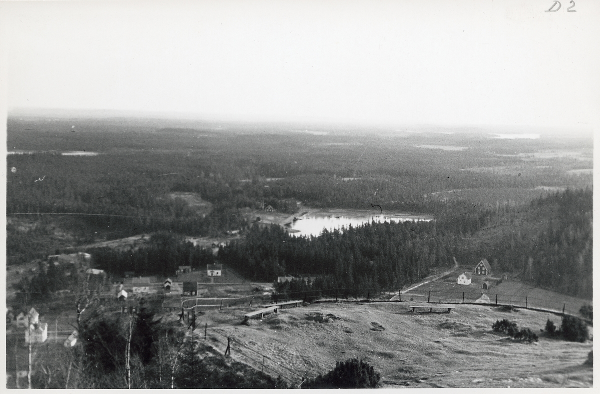 Utsiktsplats på toppen av Taberg, Smålands Taberg syns nedanför berget.