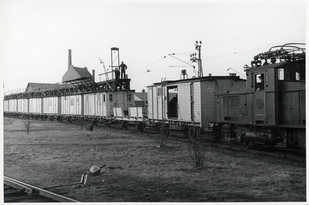 Efd. Elektrifieringsarbete. Statens Järnvägar, SJ 272 ackumulatorlok med elrevisionsvagnar.