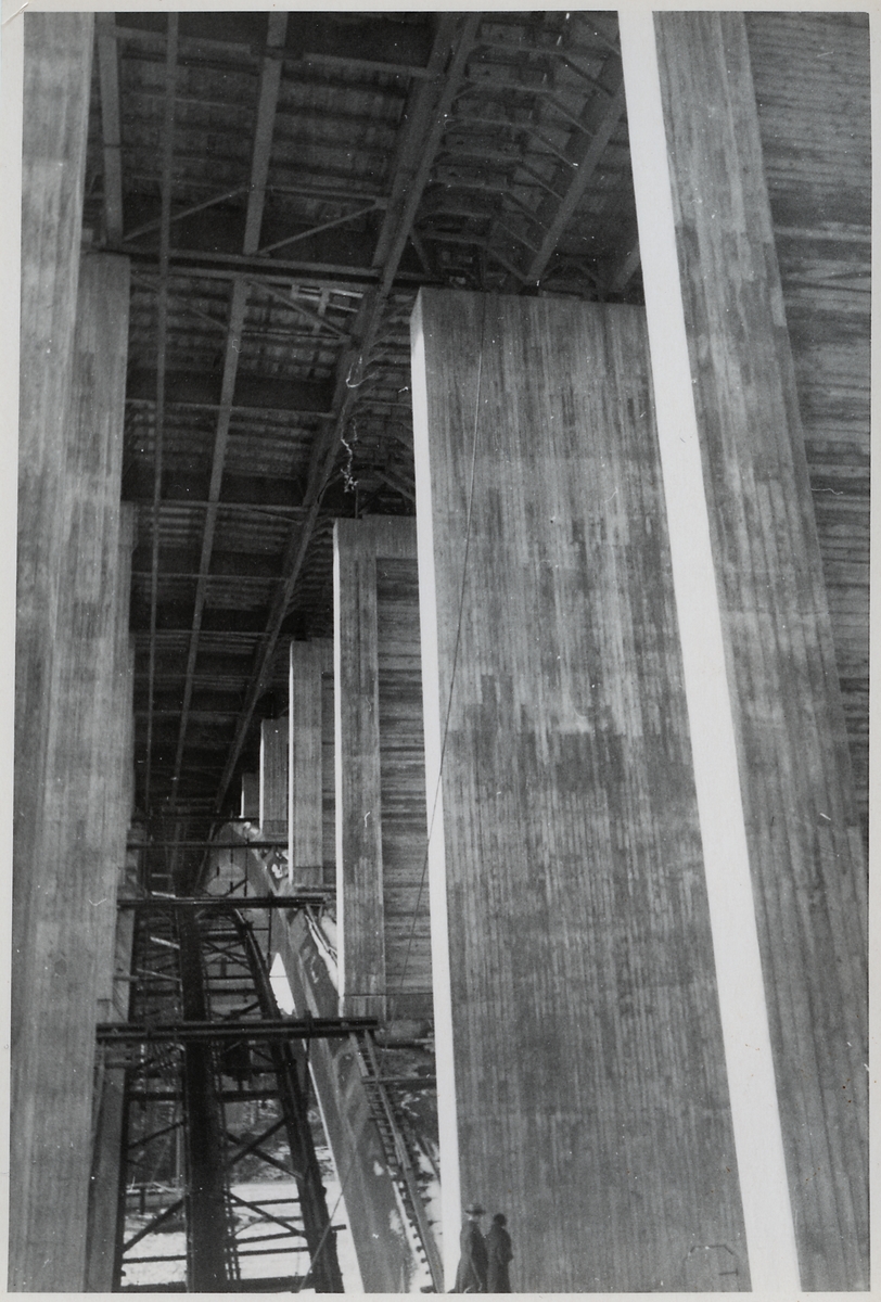 Titel: Byggnation av Tranebergsbron. Bron sträcker sig över Tranebergssundet mellan Kungsholmen och Traneberg.