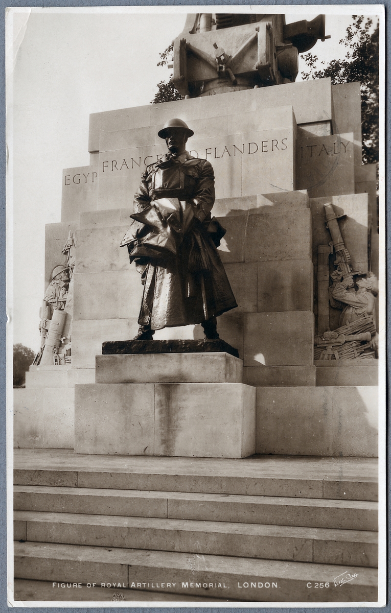 Bronsstaty av Kungliga Brittiska Artilleriets Kapten som stred i 1:a världskriget.