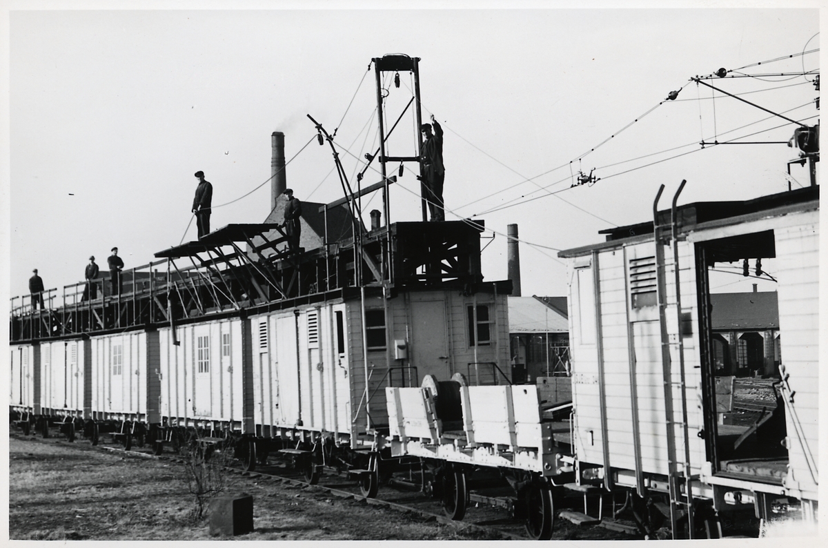 Titel: Elektrifieringsarbete från ett montagetåg.