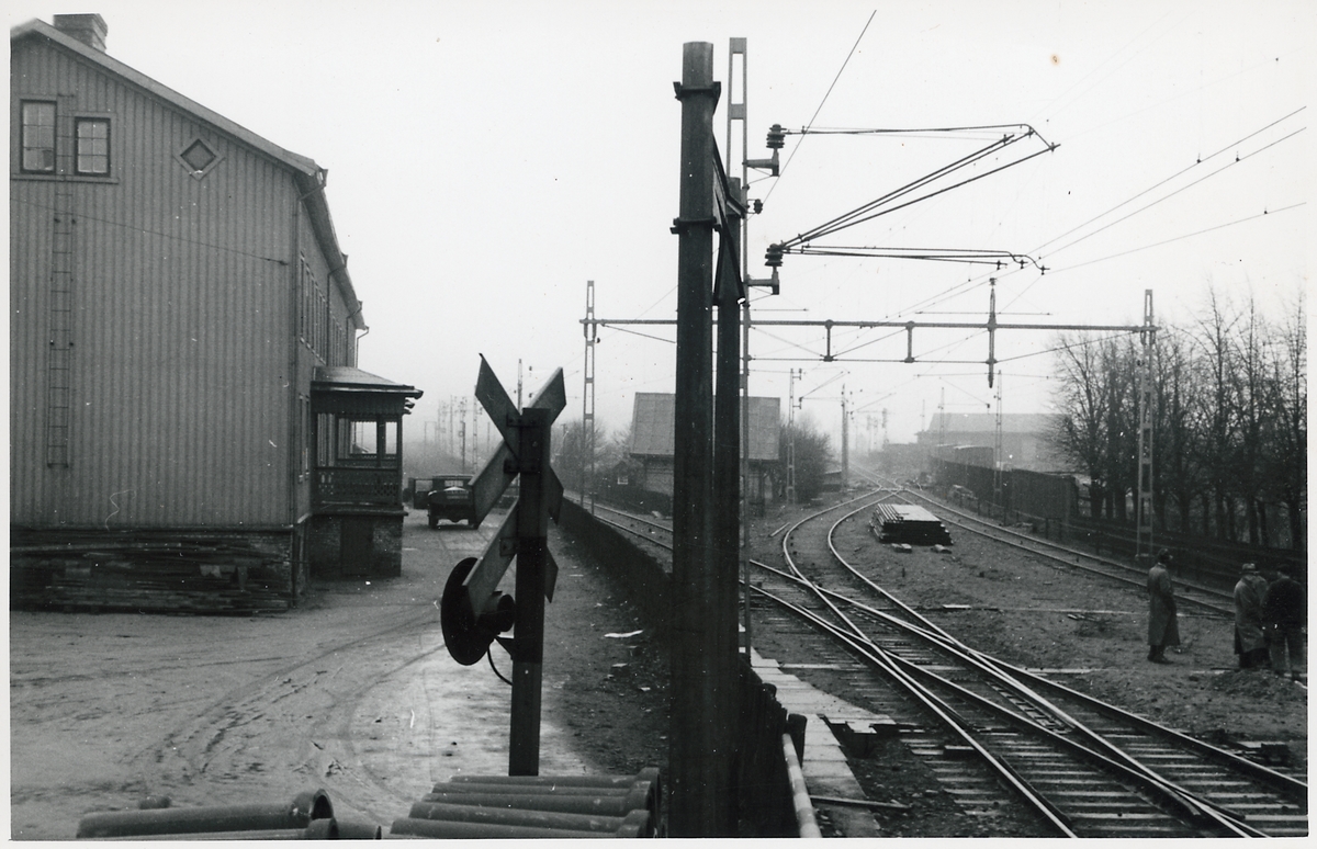 Titel: Linjebild vid färgeriet Levantens område i Göteborg, på sträckan mellan Almedal och Mölndals övre.