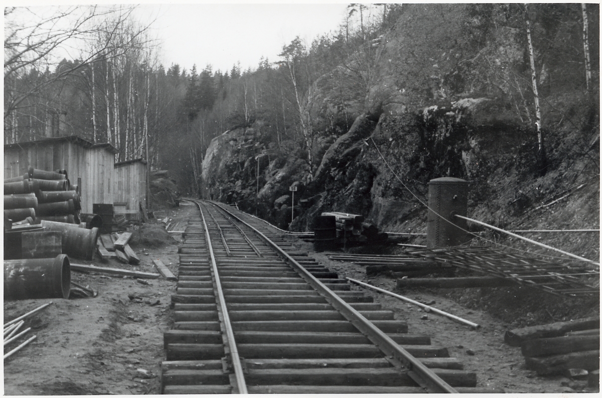 Bohusbanan, banarbete vid kilometerstolpe 56 på linjen mellan Amdals- och Skårtunnlarna.