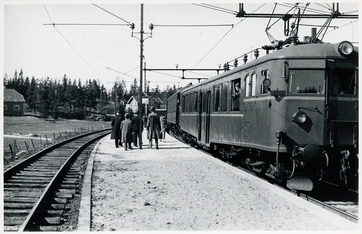 Østfoldbanen. Motorvagn på station. Norska Statsbanorna, NSB, BM 65a 19.
