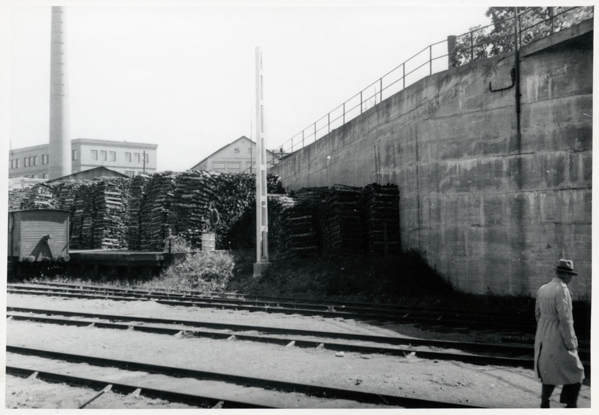 Titel: Bangård vid Sundbyberg Norra. Pågående elektrifieringsarbete. I bakgrunden syns Sieverts Kabelverk.