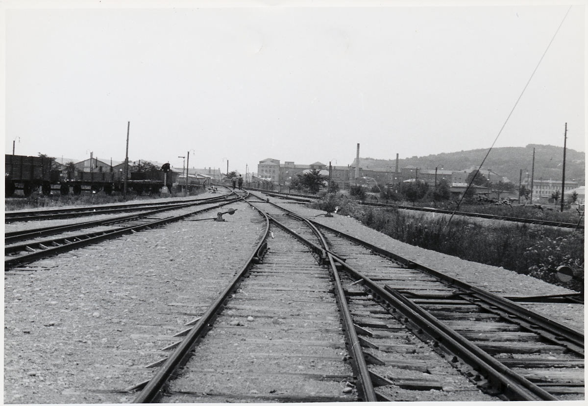 Titel: På linjen i riktning mot Sannegården i Göteborg. Bro över gatan till Götaälvbron.