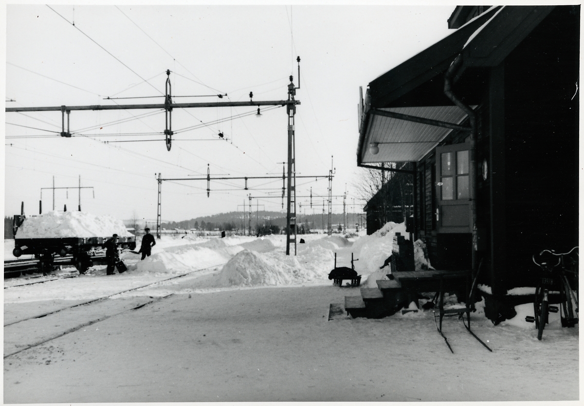 Titel: Snöskottning på bangård.