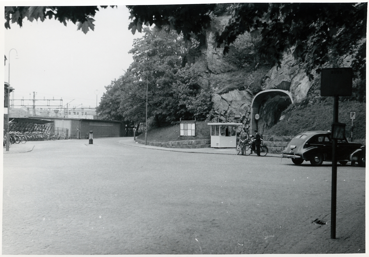 Titel: Gatusidan av Borås Centralstation. Gångtunnel och glasskiosk till höger.