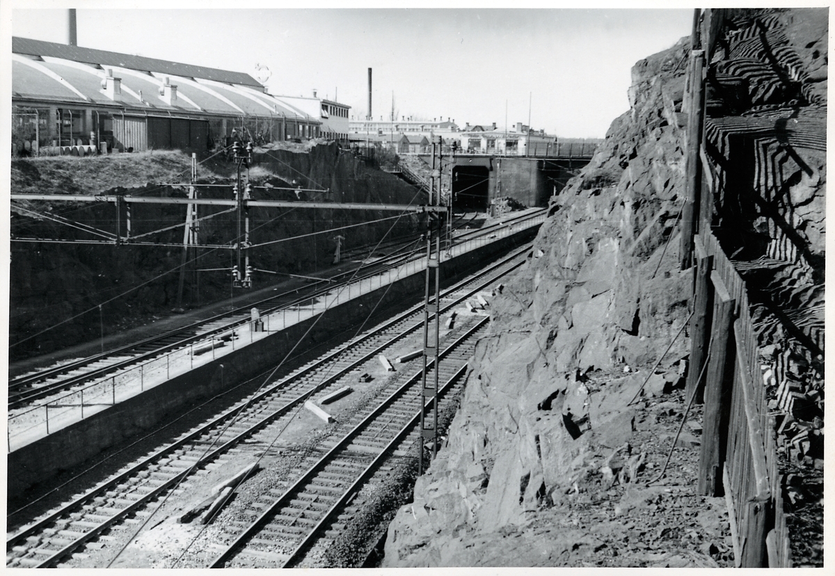 Spåret på vänster sida av bilden till Hammarbyleden från Stockholms Södra station. På sträckan mellan Stockholm Södra och Norra Hammarbyhamnen.