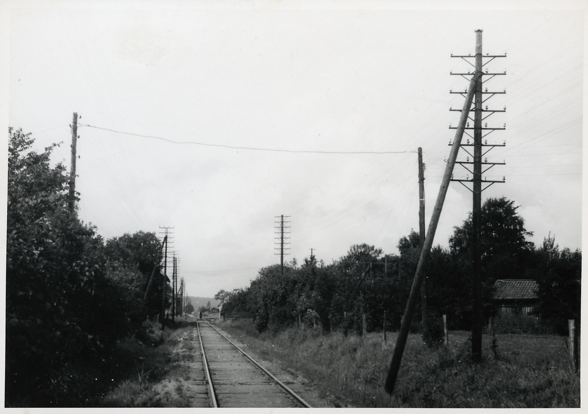 Kraftledningskorsning vid linjen mellan Grästorp och Salstad, i riktningen mot Salstad.