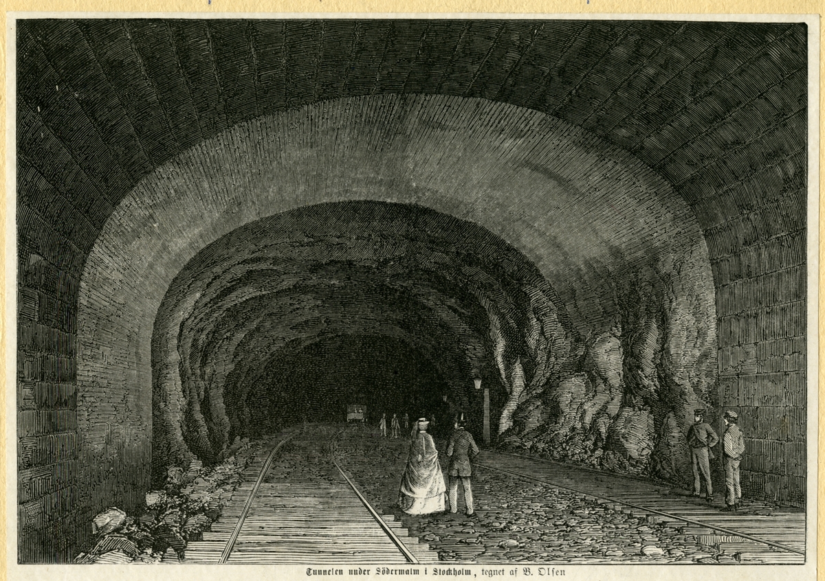 Tunnelen under Södermalm i Stockholm, tecknat av B. Olven.