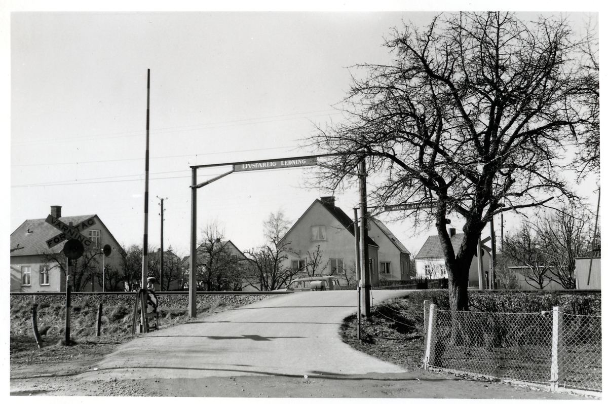 Titel: Järnvägsövergången vid Krokviksgatan sedd från vägen.
