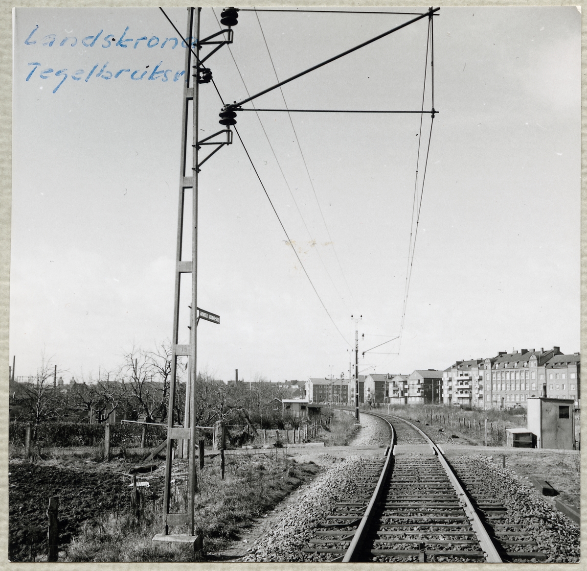 Titel: Järnvägsövergång vid Tegelbruksgatan i Landskrona på linjen mellan Billeberga och Landskrona.