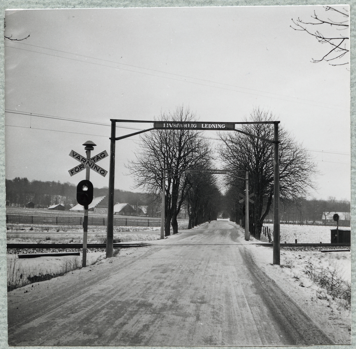 Titel: Järnvägsövergång vid Vrams Gunnarstorp på linjen mellan Åstorp och Norra Vram.