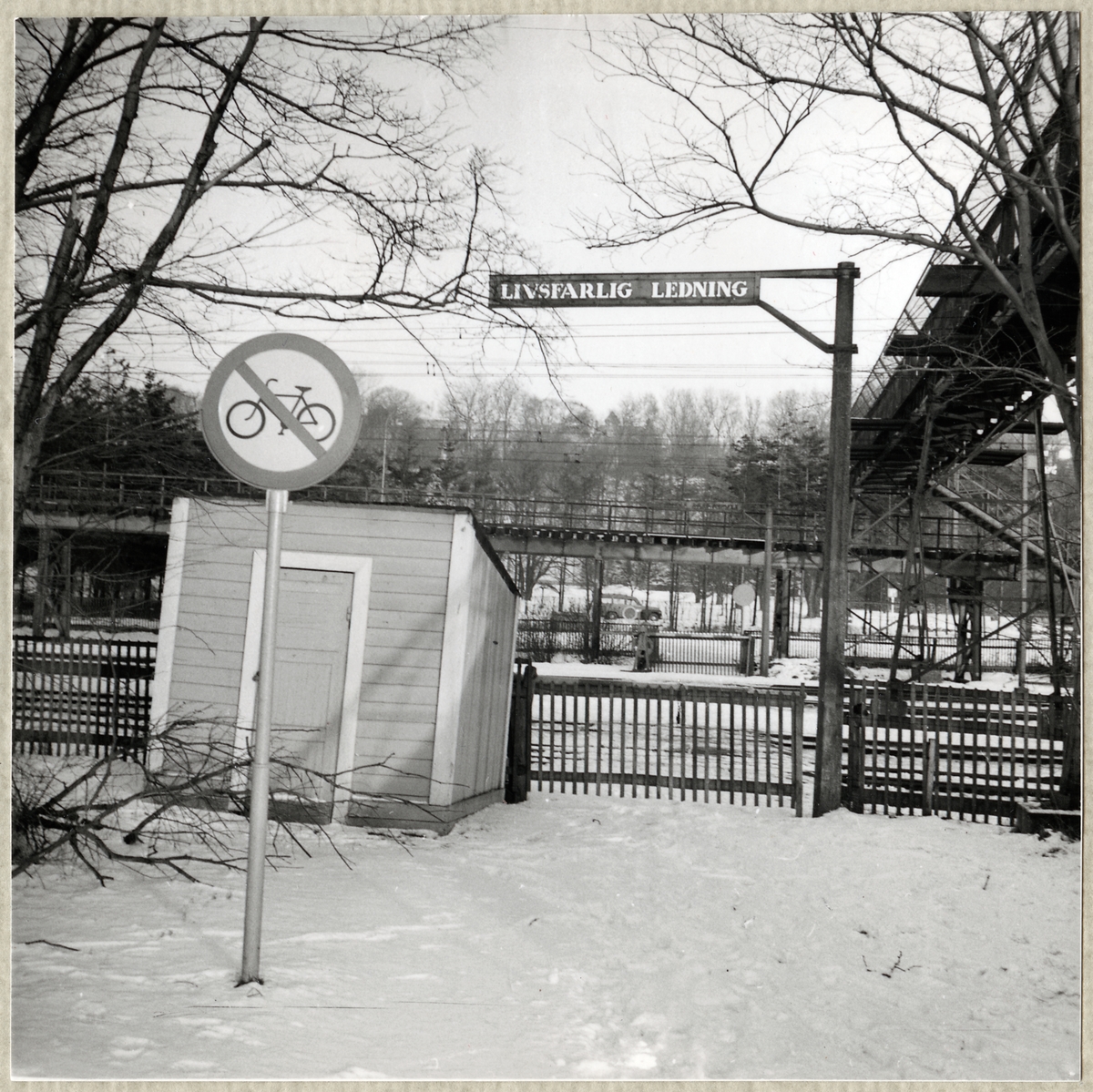 Titel: Järnvägsövergång vid Helsingborgs färjestations bangård.
