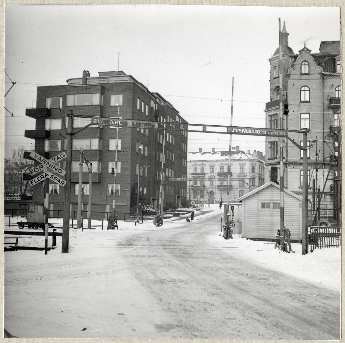 Titel: Järnvägsövergång vid Tågatan i Helsingborg på linjen mellan färjestationen och Ödåkra.