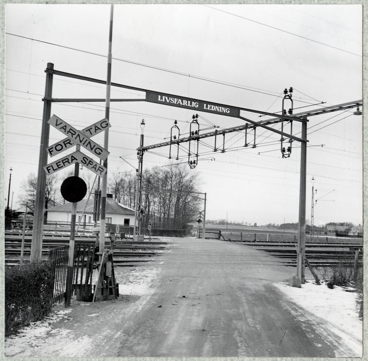 Titel: Järnvägsövergång vid norra delen av bangården vid Kattarp station.