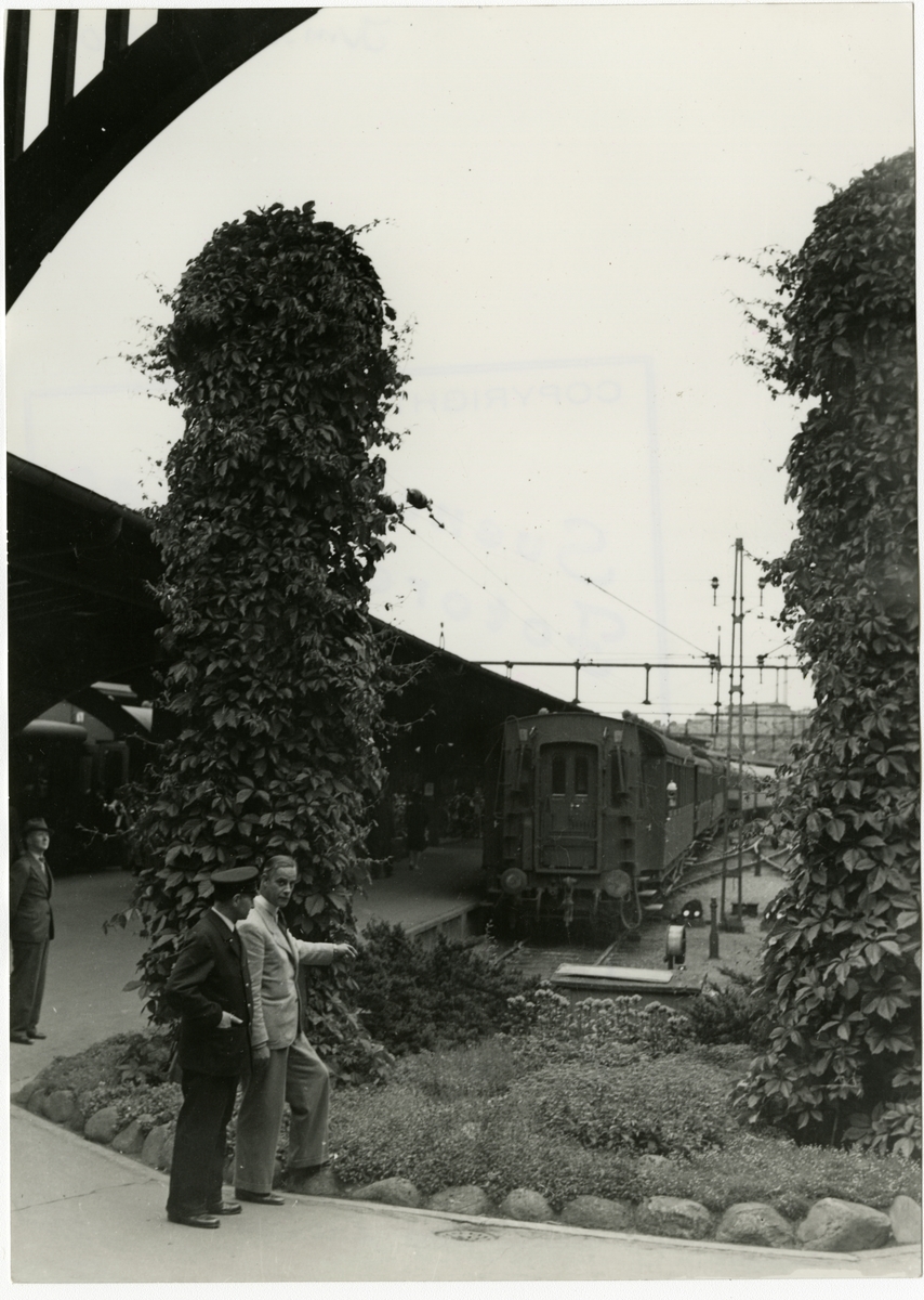 Stenparti vid stoppbockarna på Stockholms Central med träd.