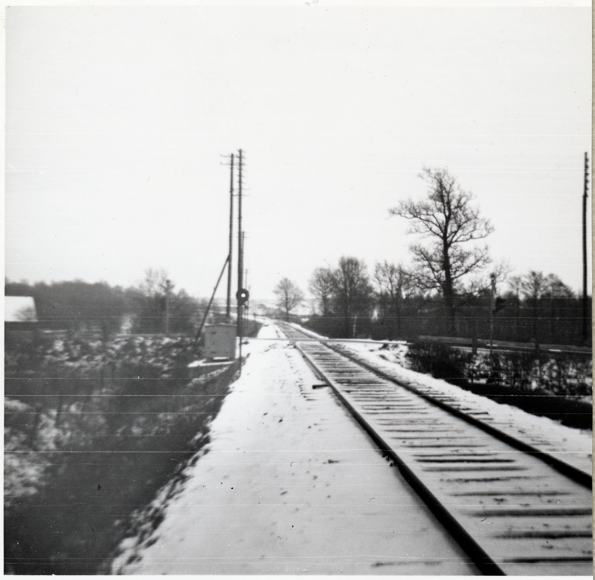 Titel: Järnvägsövergång vid Herrevadskloster, på sträckan mellan Klippan och Ljungbyhed.