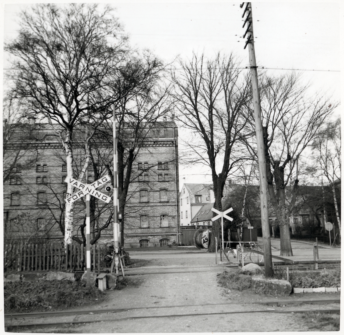 Titel: Järnvägsövergång vid Sandbergs valskvarn i Ystad.